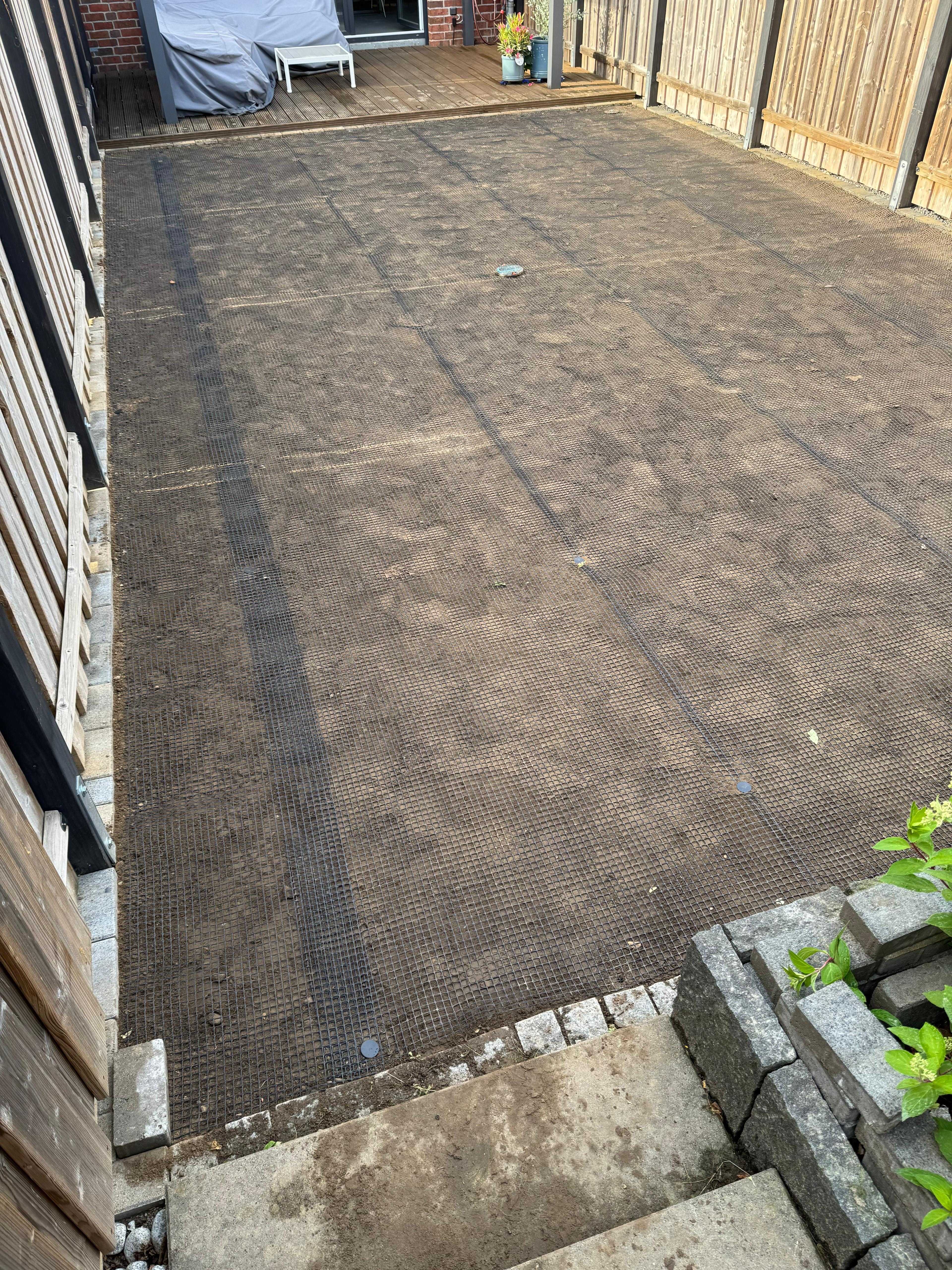 Professionelle Vorbereitung des Untergrunds mit Gittermatte für neue Rasenfläche